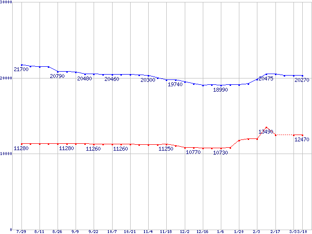 (10000rpm,Serial ATA/150,8MB)の最安値推移