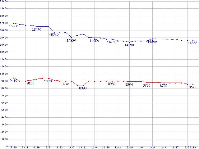 WD Raptor (10000rpm,Serial ATA/150,8MB)の最安値推移