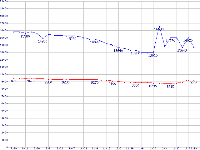 WD Caviar (7200rpm,Ultra ATA/133,8MB)の最安値推移