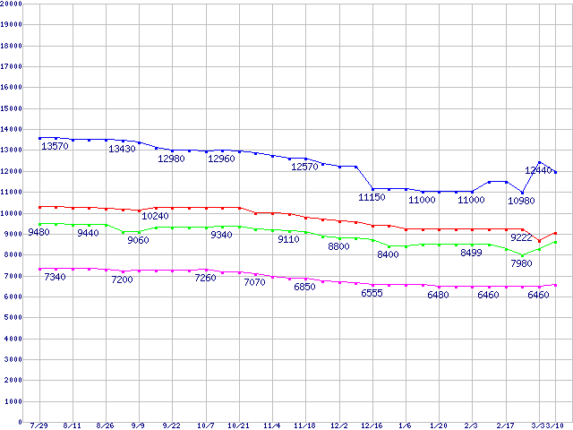 (7200rpm,8MB,Serial ATA/150)の最安値推移