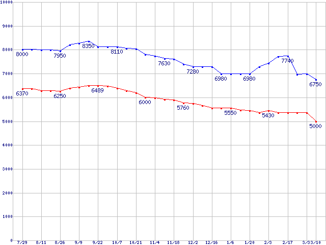 | DiamondMax 16 (5400rpm,Ultra ATA/133,2MB,80GB/Platter)の最安値推移 | | | (2004年7月29日~2005年3月10日) |