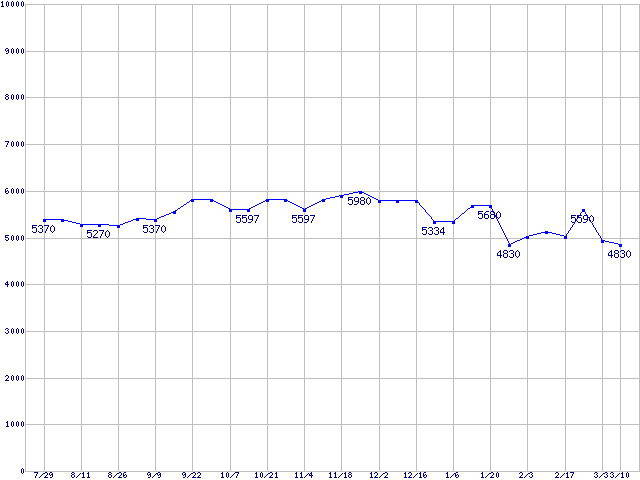 Barracuda 5400.1 (5400rpm,Ultra ATA/100,2MB)の最安値推移
