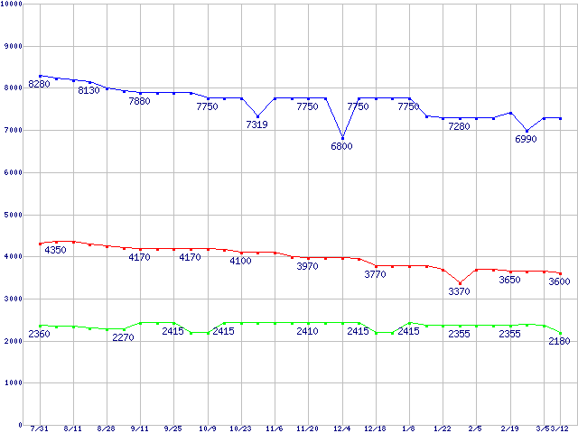 PC133 SDRAM DIMM CasLatency=3の最安値推移