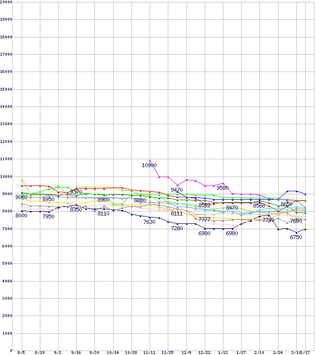 ※点線部は販売店が確認できなかった、または調査データがないことを示します