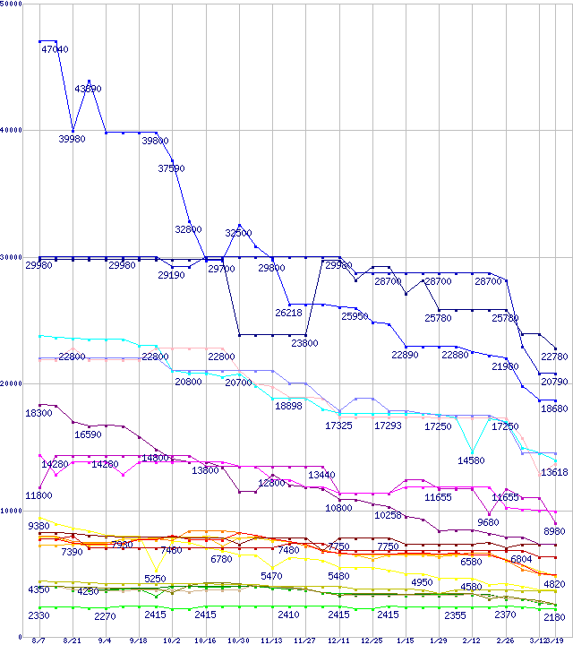 ※点線部は販売店が確認できなかった、または調査データがないことを示します