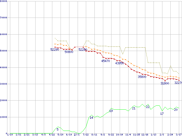 | Deskstar 7K400 HDS724040KLSA80 (400GB,8MB)の価格推移 | | | (2004年1月10日~2005年3月17日) |