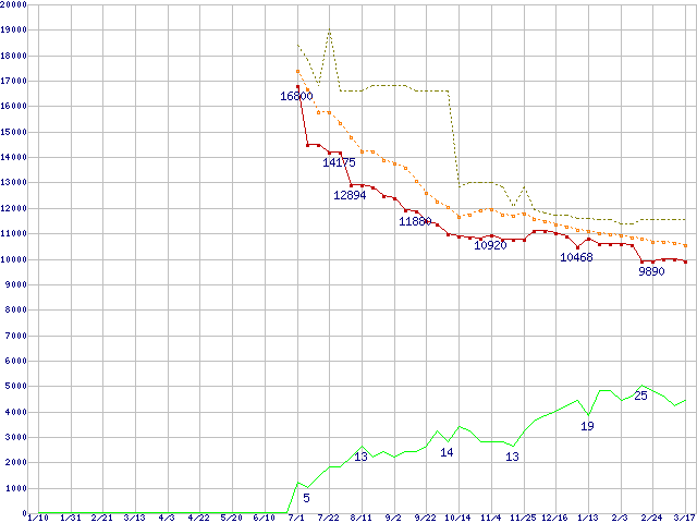 | Barracuda 7200.7 ST3160827AS (160GB)の価格推移 | | | (2004年1月10日~2005年3月17日) |