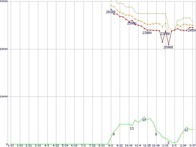 | MaXLine III 7B300S0 (300GB)の価格推移 | | | (2004年1月10日~2005年3月17日) |