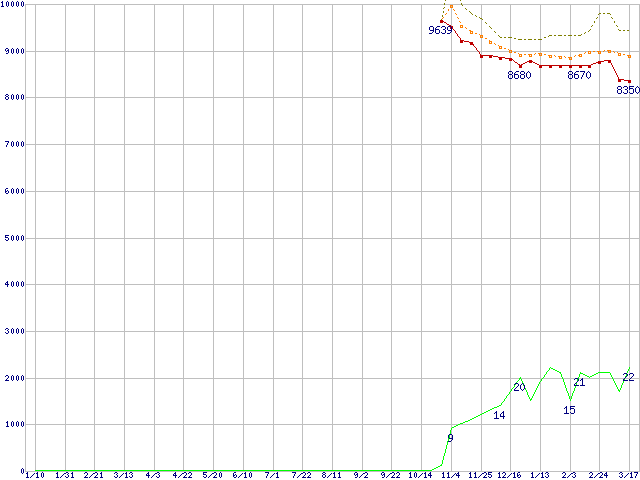 | DiamondMax 10 6B160P0 (160GB,8MB)の価格推移 | | | (2004年1月10日~2005年3月17日) |