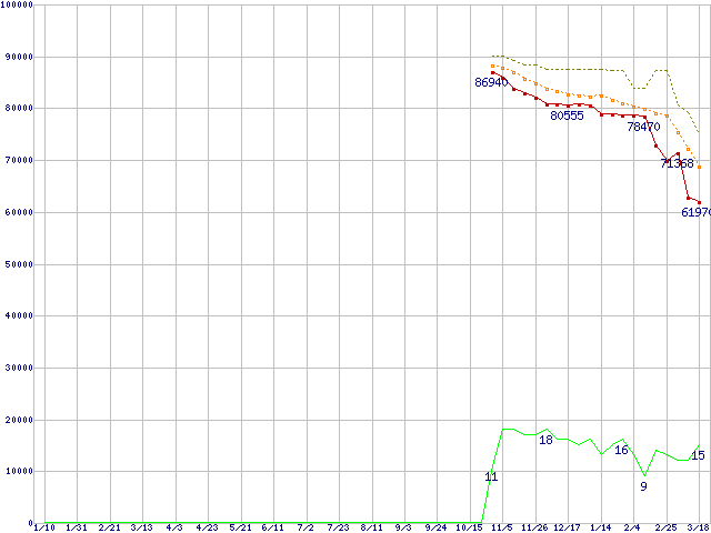 | Athlon 64 4000+(2.4GHz,L2 1MB) リテールパッケージの価格推移 | | | (2004年1月10日~2005年3月18日) |