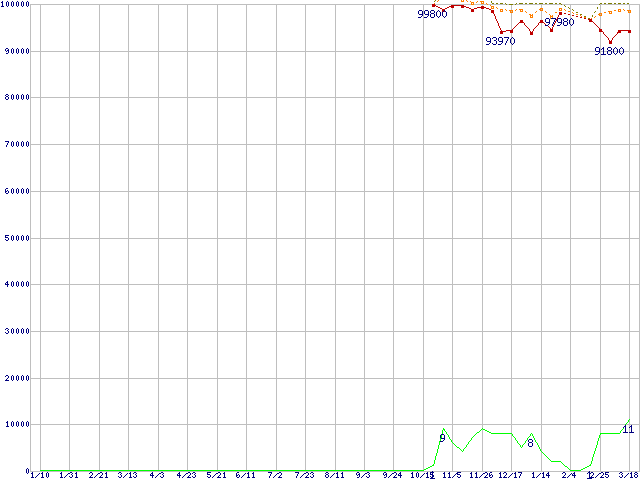 | Athlon 64 FX-55(2.6GHz,Socket 939) リテールパッケージの価格推移 | | | (2004年1月10日~2005年3月18日) |