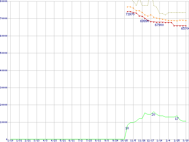| Pentium M 765 (2.10GHz) リテールパッケージの価格推移 | | | (2004年1月10日~2005年3月18日) |