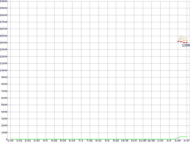 ※このグラフは過去のデータも税率5%相当に調整した税込み相当額のグラフです。 税率変更や、総額表示方式導入(2004年4月)の影響は除いています。 | | | ●凡例 | 最安値 (点線部は販売店未確認 または未調査) | 平均値 | 最高値 | ショップ数 |