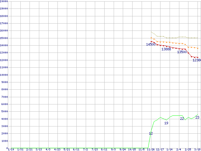 | Celeron D 345J (3.06GHz) リテールパッケージの価格推移 | | | (2004年1月10日~2005年3月18日) |