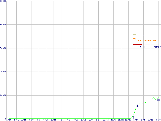 | Pentium M 750 (1.86GHz) リテールパッケージの価格推移 | | | (2004年1月10日~2005年3月18日) |