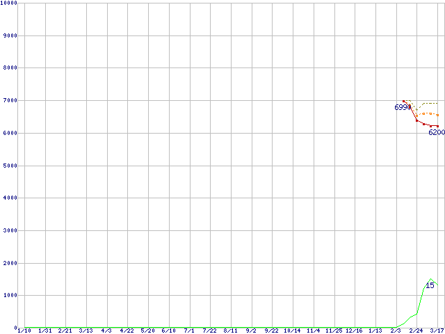 | Deskstar 7K80 HDS728080PLA380 (80GB,8MB)の価格推移 | | | (2004年1月10日~2005年3月17日) |