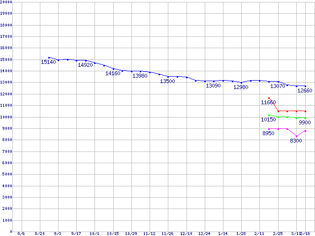 Socket 754 (PGA,FSB 800MHz)の最安値推移