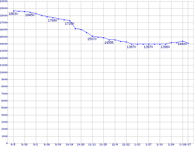 (7200rpm,8MB,Serial ATA/150)の最安値推移