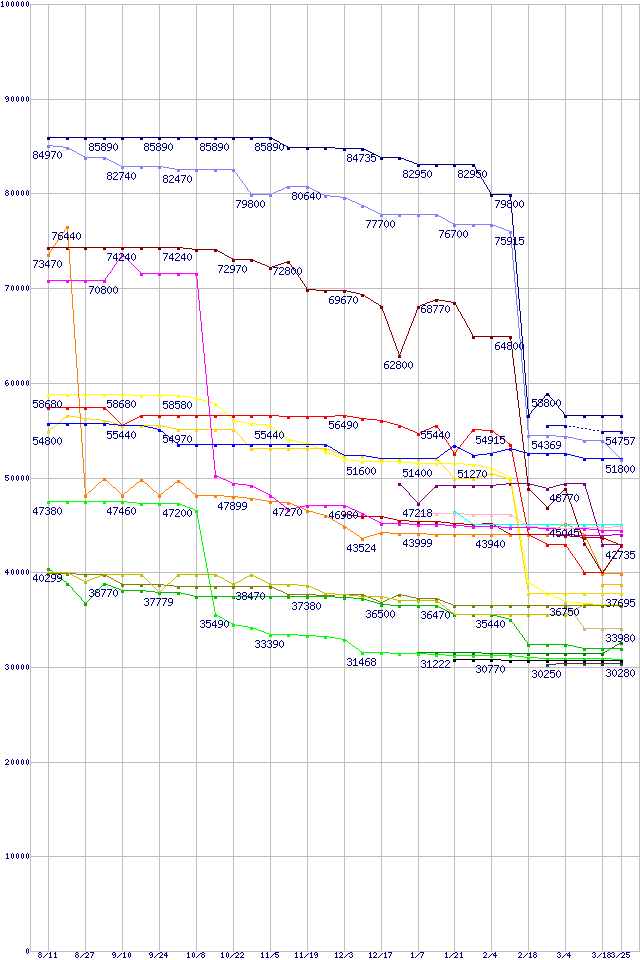 CPU主要製品(最安値2万円~3万円未満)の最安値推移
