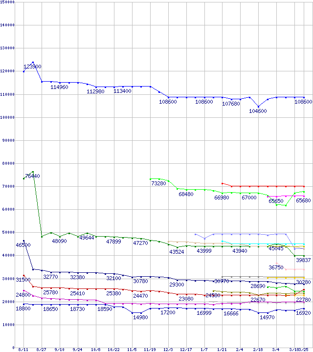 Socket 478・FSB 800MHzの最安値推移