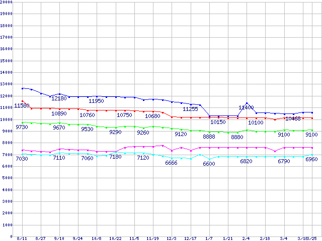 ※点線部は販売店が確認できなかった、または調査データがないことを示します