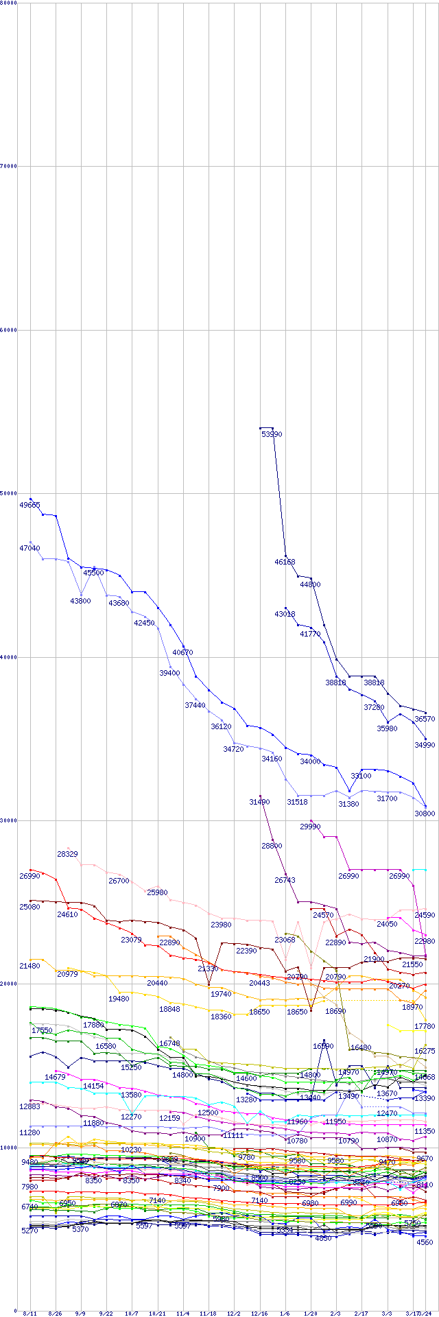 ※製品名をクリックすると個別のグラフを表示します ※点線部は販売店が確認できなかった、または調査データがないことを示します |