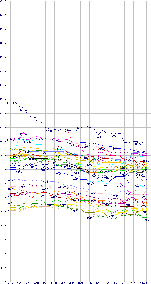 ※製品名をクリックすると個別のグラフを表示します ※点線部は販売店が確認できなかった、または調査データがないことを示します |