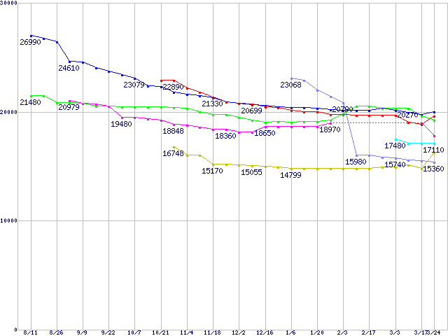 HDD主要製品(最安値1万5千円~2万円未満)の最安値推移