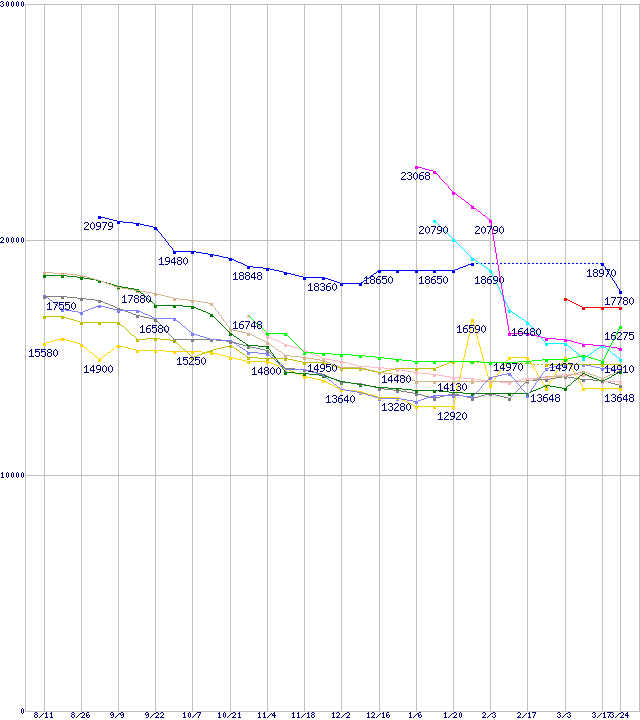 ※点線部は販売店が確認できなかった、または調査データがないことを示します