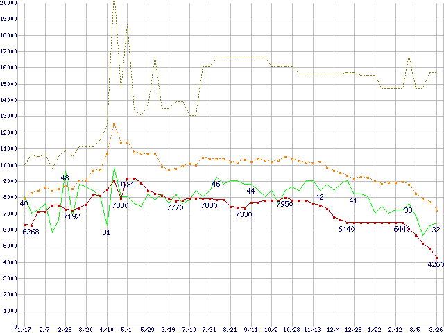 PC2100(DDR266) DDR SDRAM DIMM(CL 2.5)の最安値推移