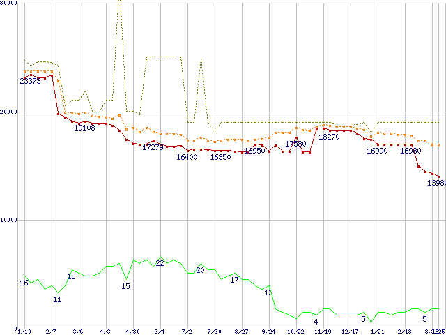 | Athlon XP 3000+ (2.17GHz) リテールパッケージの価格推移 | | | (2004年1月10日~2005年3月25日) |