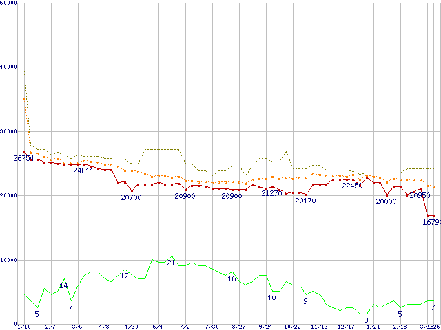 | Athlon XP 3200+ (2.2GHz) リテールパッケージの価格推移 | | | (2004年1月10日~2005年3月25日) |