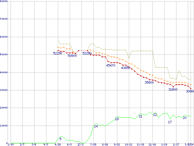 | Deskstar 7K400 HDS724040KLSA80 (400GB,8MB)の価格推移 | | | (2004年1月10日~2005年3月24日) |