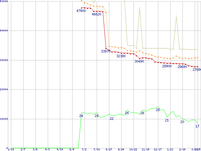 | Pentium 4 550 (3.40GHz) リテールパッケージの価格推移 | | | (2004年1月10日~2005年3月25日) |