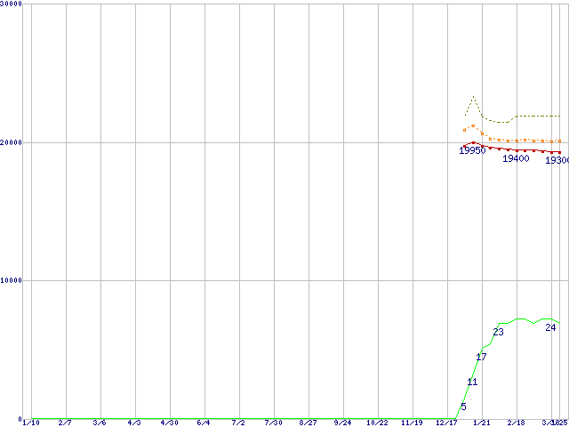 | Pentium 4 530J (3GHz) リテールパッケージの価格推移 | | | (2004年1月10日~2005年3月25日) |