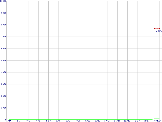 ※このグラフは過去のデータも税率5%相当に調整した税込み相当額のグラフです。 税率変更や、総額表示方式導入(2004年4月)の影響は除いています。 | | | ●凡例 | 最安値 (点線部は販売店未確認 または未調査) | 平均値 | 最高値 | ショップ数 |