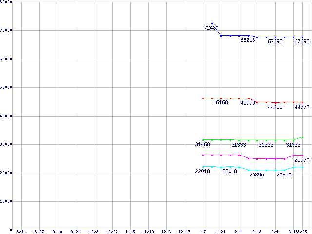 mPGA479M (Micro-FCPGA ,FSB 533MHz,L2 2MB,Dothan)の最安値推移