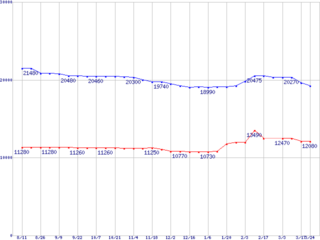WD Caviar SE (7200rpm,Serial ATA/150,8MB)の最安値推移