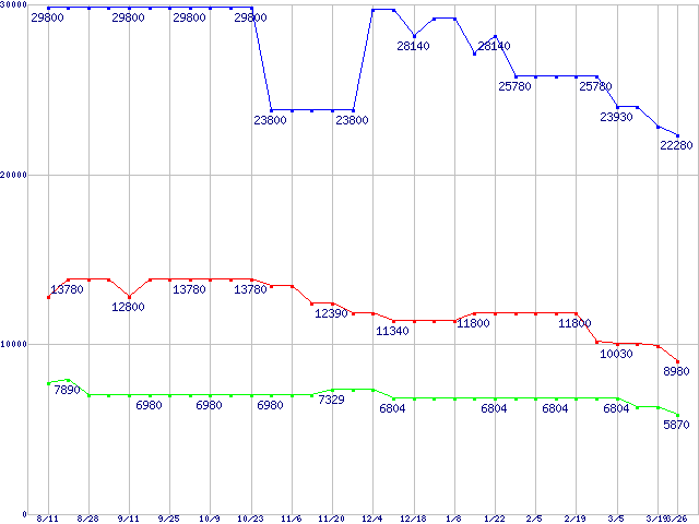 PC2700(DDR333) DDR SDRAM DIMMの最安値推移