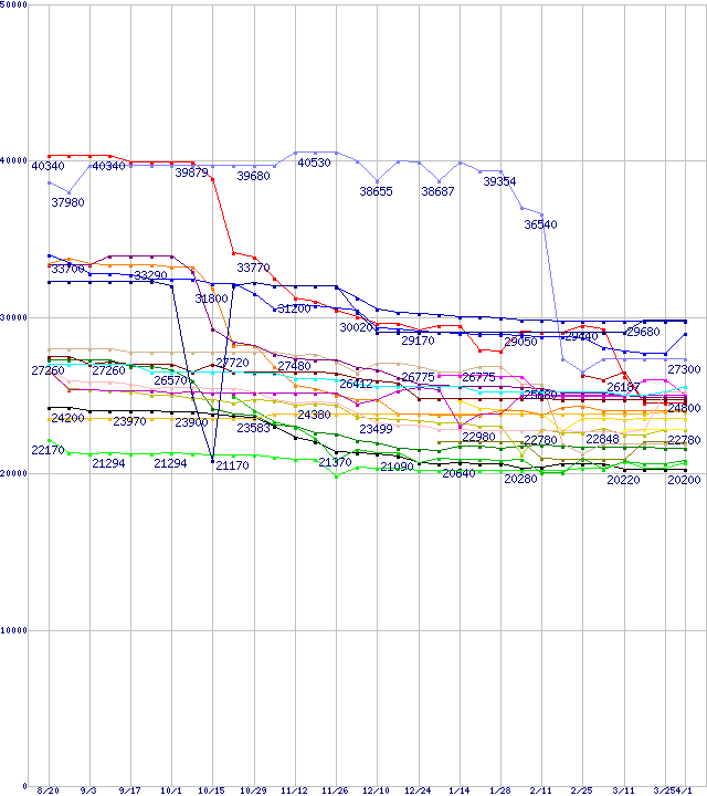CPU主要製品(最安値1万円~2万円未満)の最安値推移