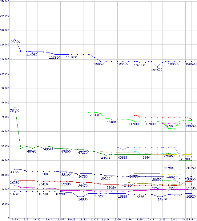 ※点線部は販売店が確認できなかった、または調査データがないことを示します