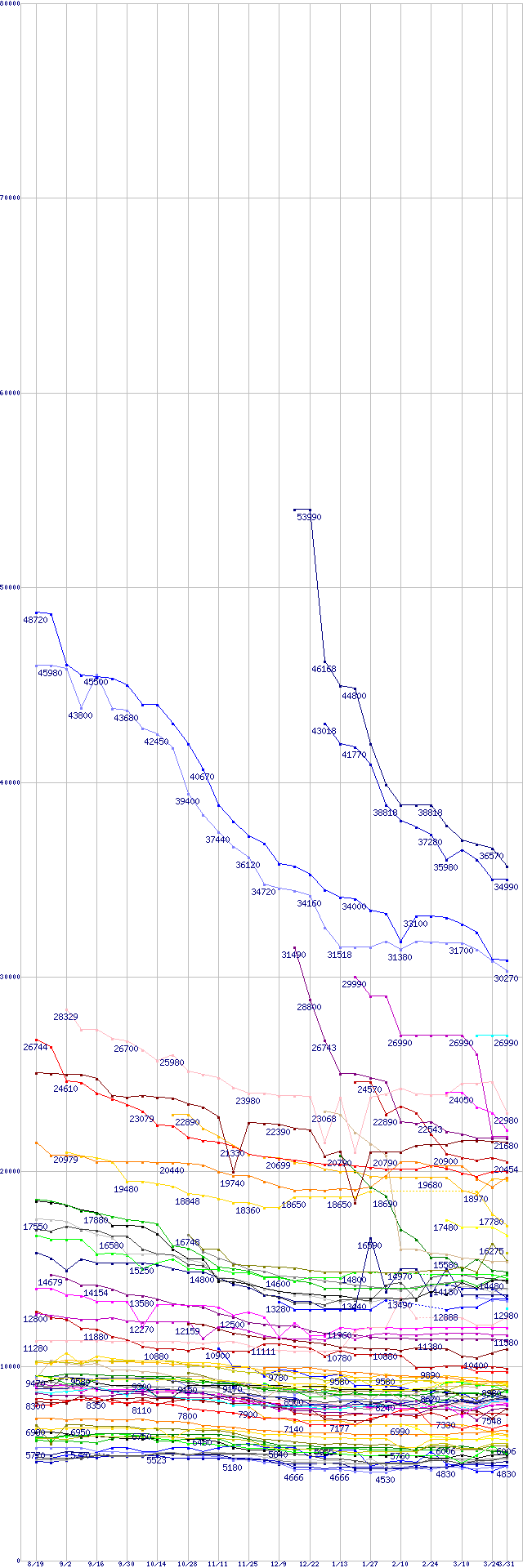 ※製品名をクリックすると個別のグラフを表示します ※点線部は販売店が確認できなかった、または調査データがないことを示します |