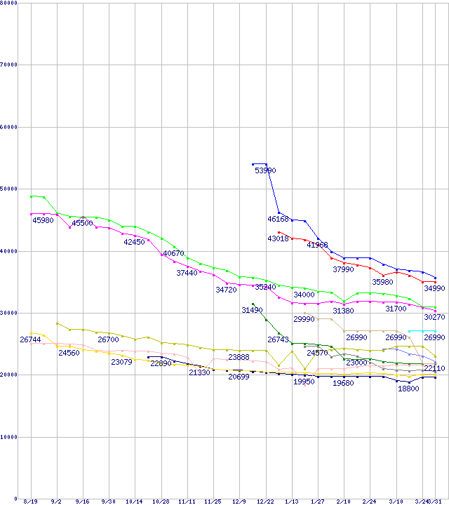 ※点線部は販売店が確認できなかった、または調査データがないことを示します