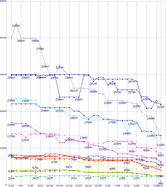 ※点線部は販売店が確認できなかった、または調査データがないことを示します
