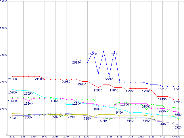 ※点線部は販売店が確認できなかった、または調査データがないことを示します