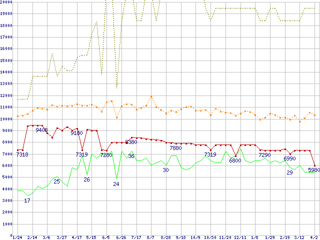 PC133 SDRAM DIMM CasLatency=3の最安値推移