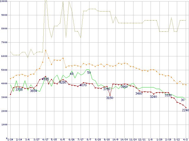 PC2100(DDR266) DDR SDRAM DIMM(CL 2.5)の最安値推移