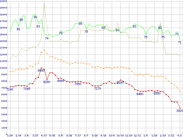 PC3200(DDR400) DDR SDRAM DIMMの最安値推移