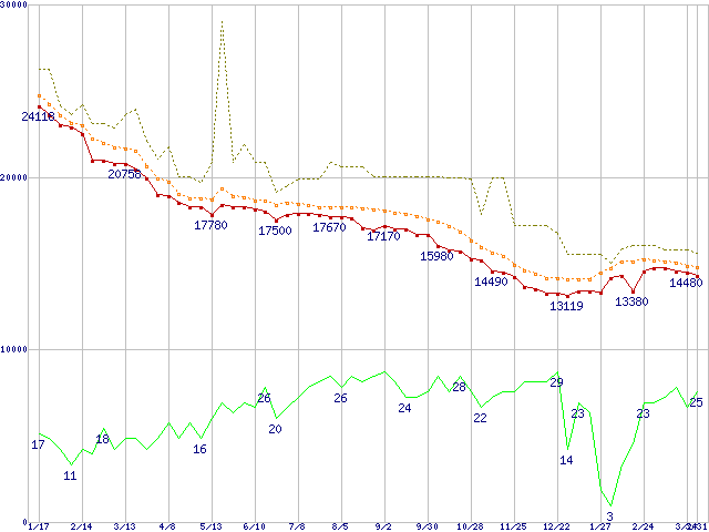 | Deskstar 7K250 HDS722525VLAT80 (250GB,8MB)の価格推移 | | | (2004年1月17日~2005年3月31日) |
