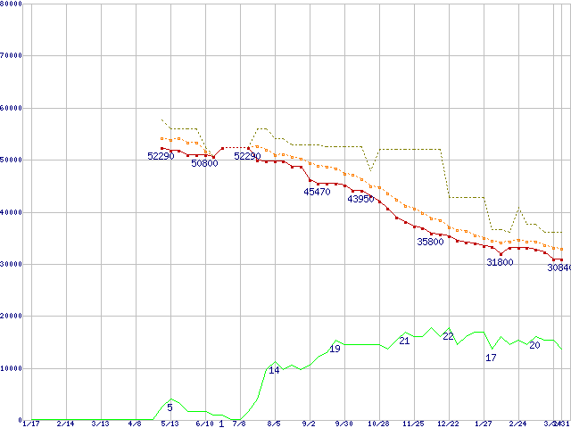 | Deskstar 7K400 HDS724040KLSA80 (400GB,8MB)の価格推移 | | | (2004年1月17日~2005年3月31日) |
